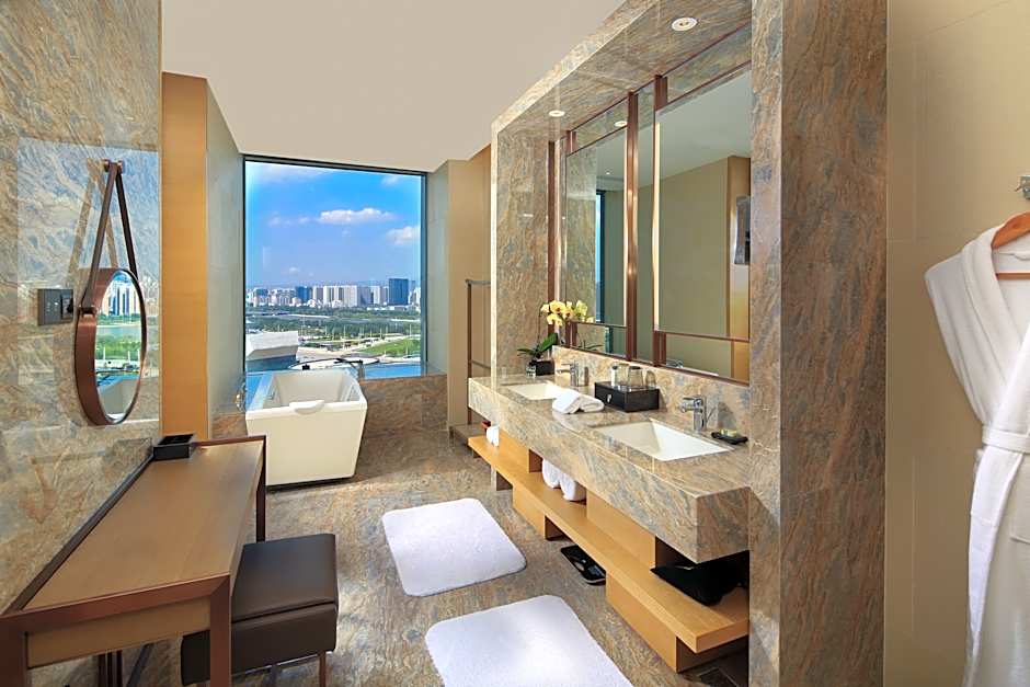 The hot tub is a top feature of this suite. Featuring free toiletries and bathrobes, this suite includes a private bathroom with a bath, a shower and a hairdryer. The spacious air-conditioned suite features a flat-screen TV with cable channels, soundproof walls, a mini-bar, executive lounge access as well as river views. The unit has 1 bed.